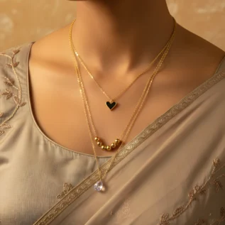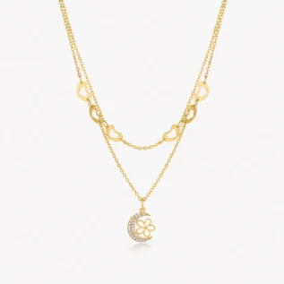 Designer Layered Heart Pendant Gold Chain Necklace
