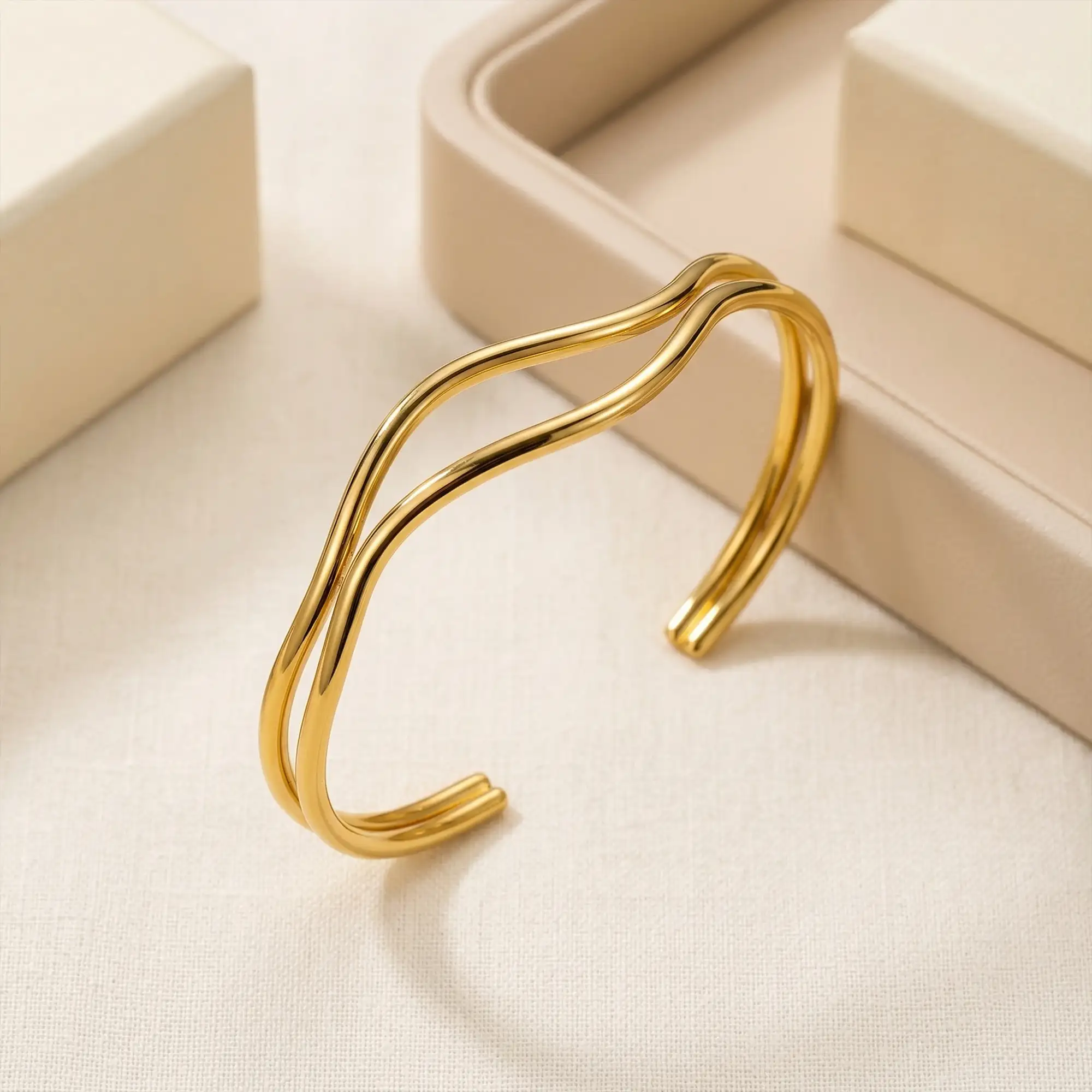 Be the first to review “Double Line Gold Cuff Bracelet for Women”