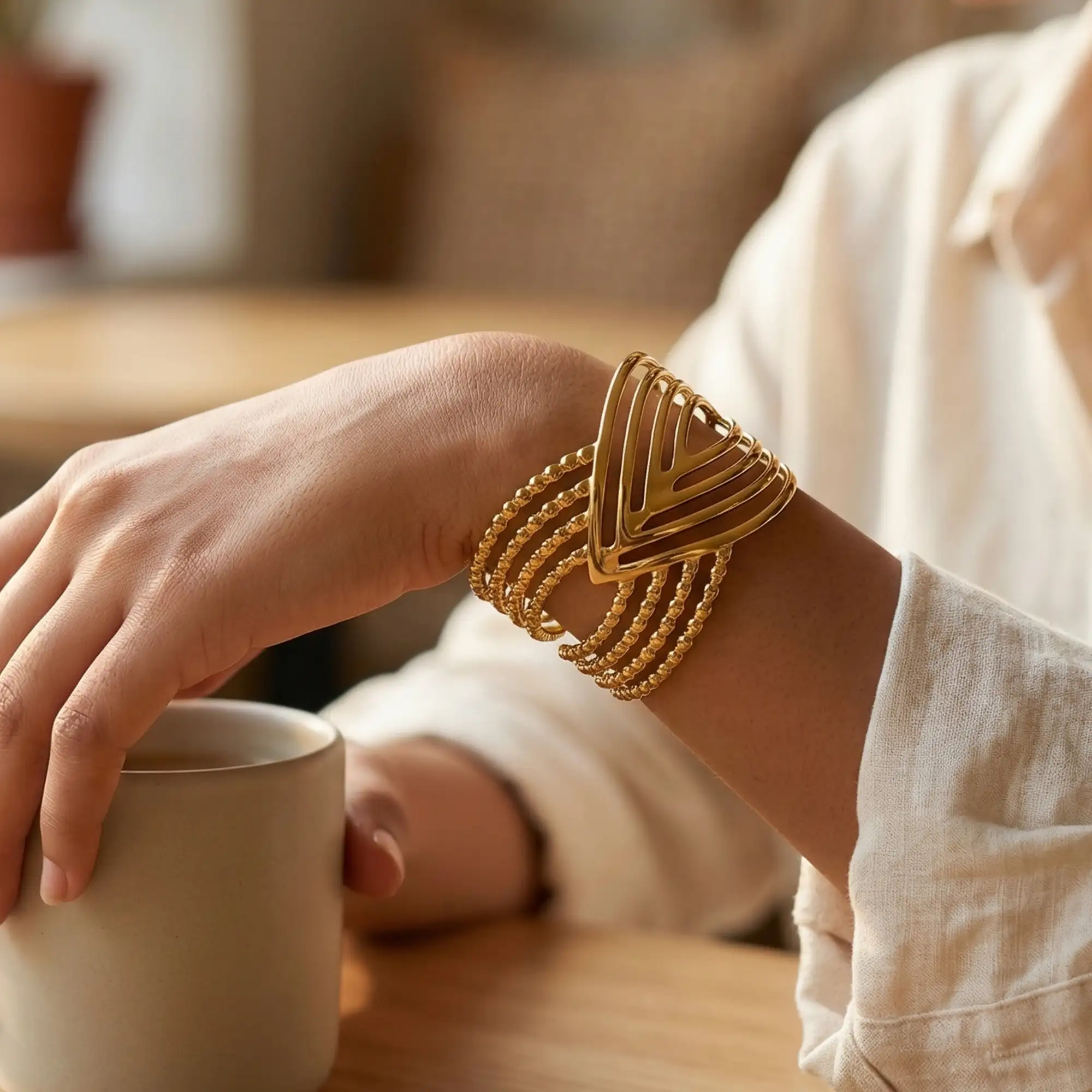 Elegant Gold Multi-Layer Cuff Bracelet for Women