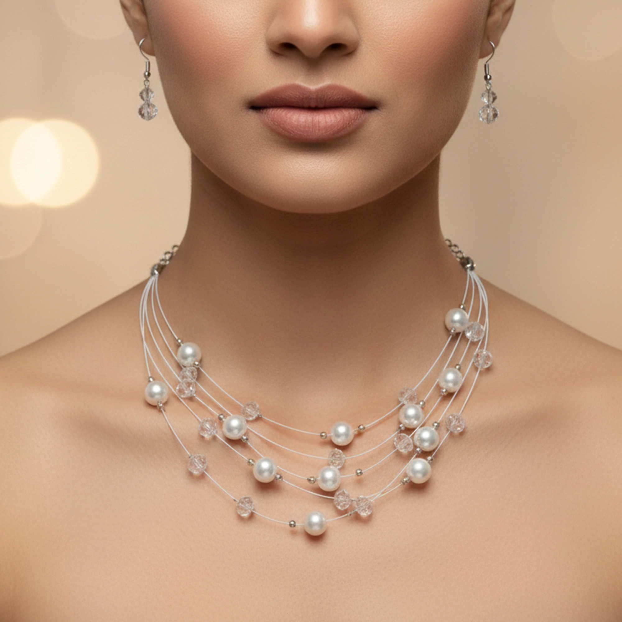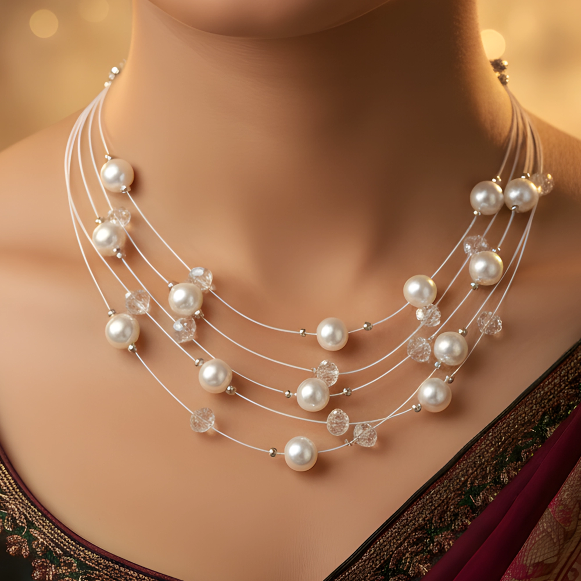 Be the first to review “Layered Pearl Silver Tone Fashion Necklace Women”
