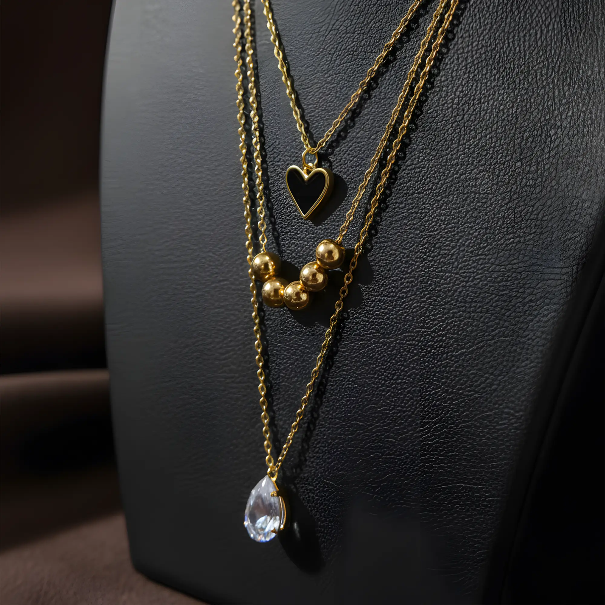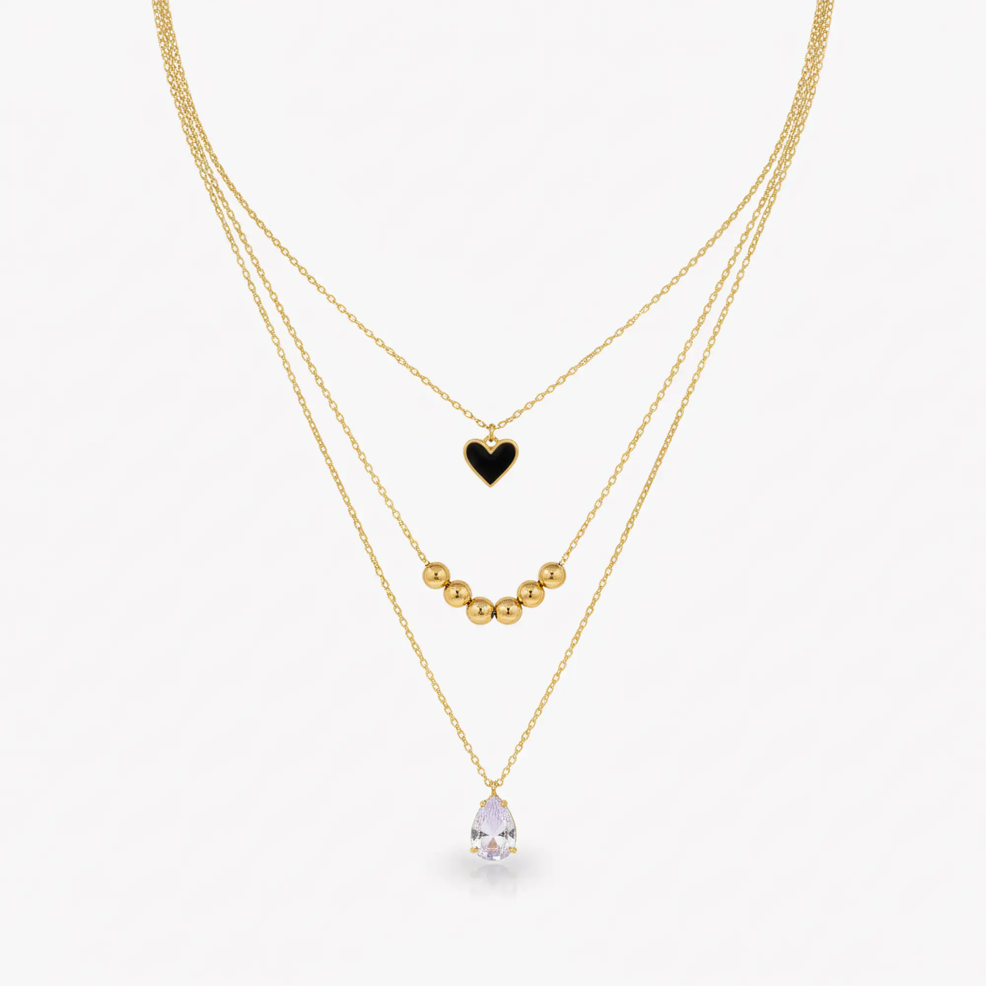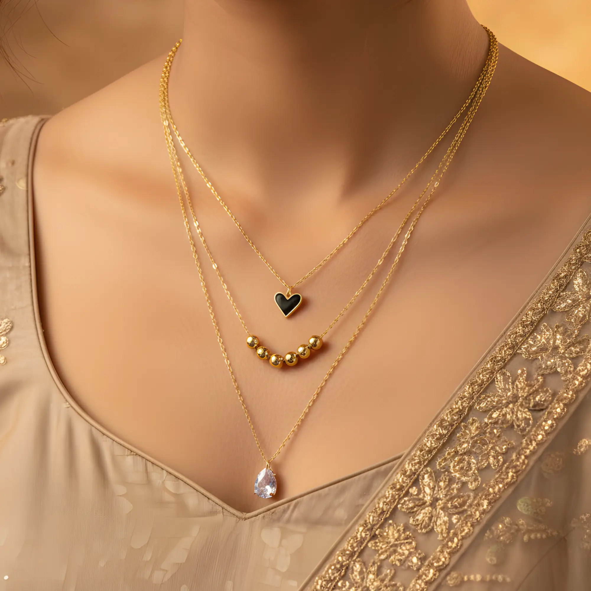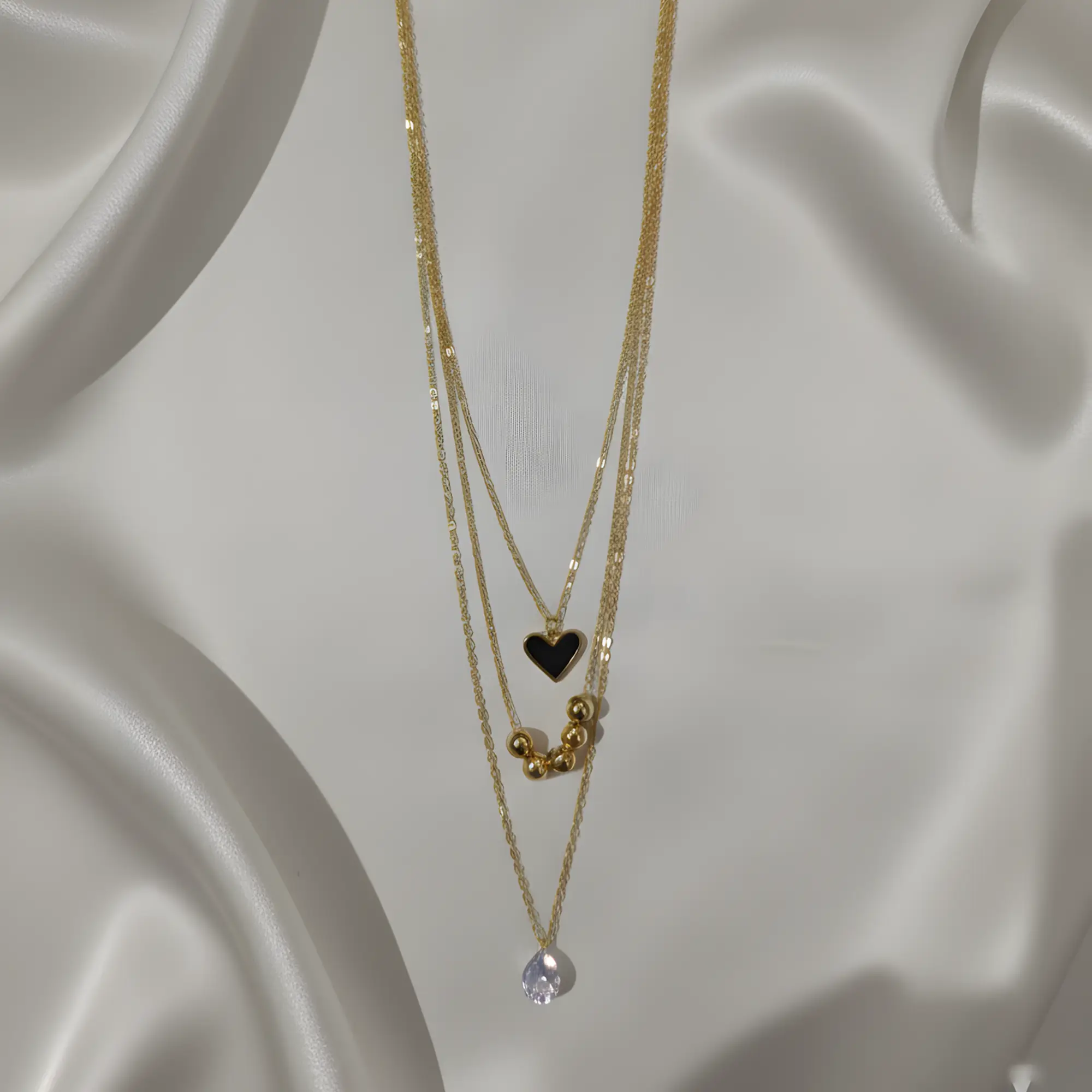 Upgrade your everyday style with the Lunara Black Heart Crystal Layered Necklace, designed in a chic multi-layer pattern with a bold black heart and sparkling crystal drop. Perfect for date nights, parties, and trendy casual looks, it adds a modern glam touch instantly. Lightweight and elegant, this necklace is a must-have statement piece for this season.