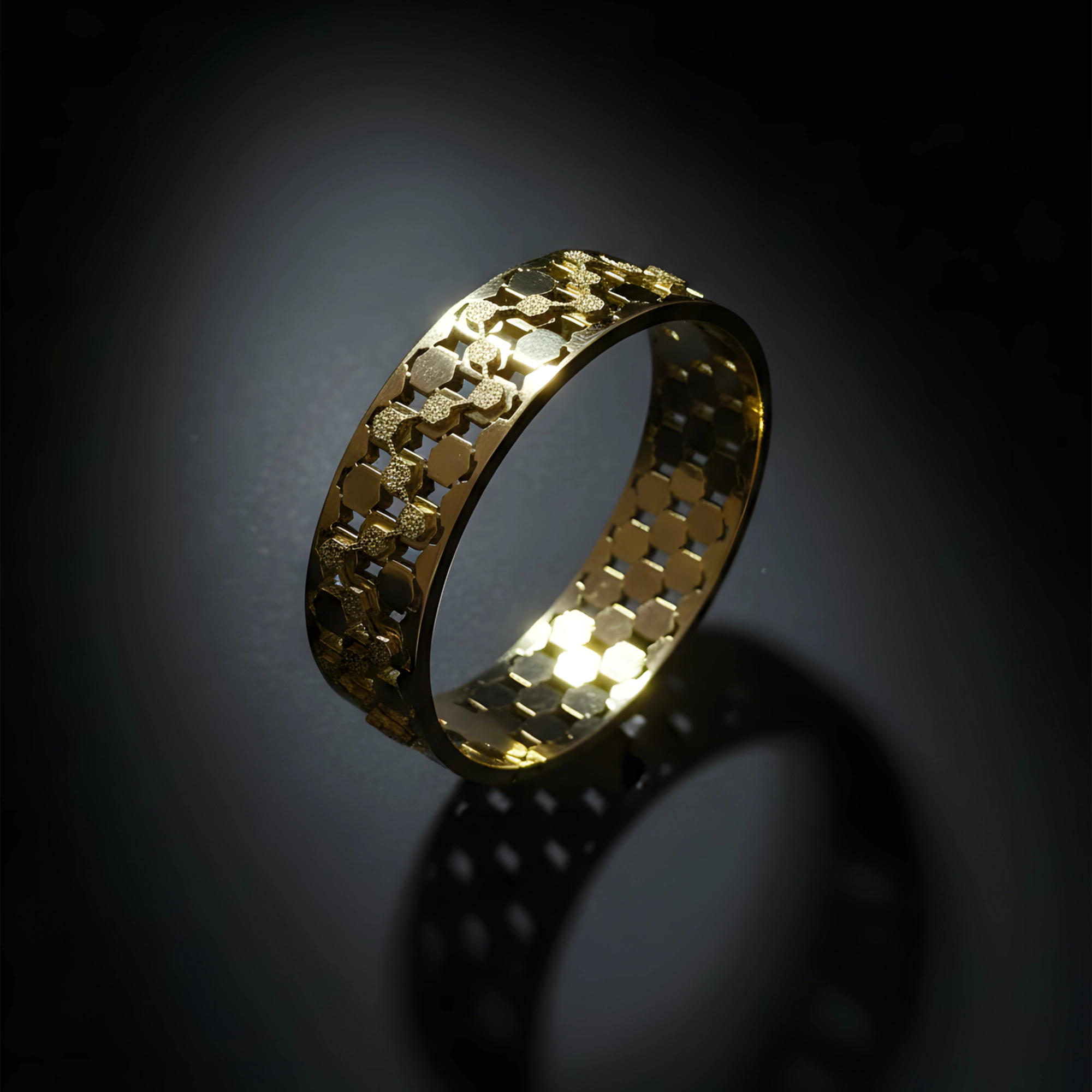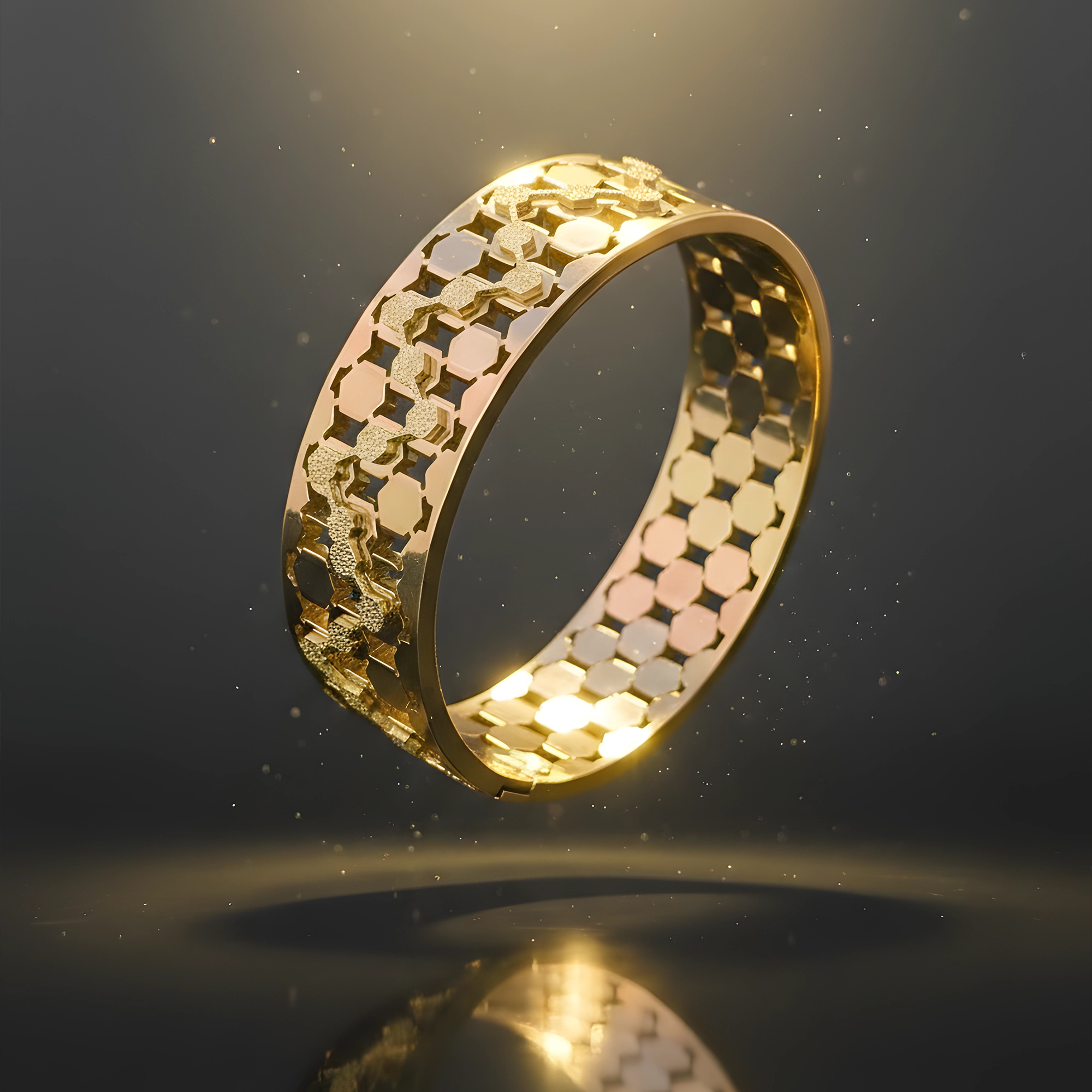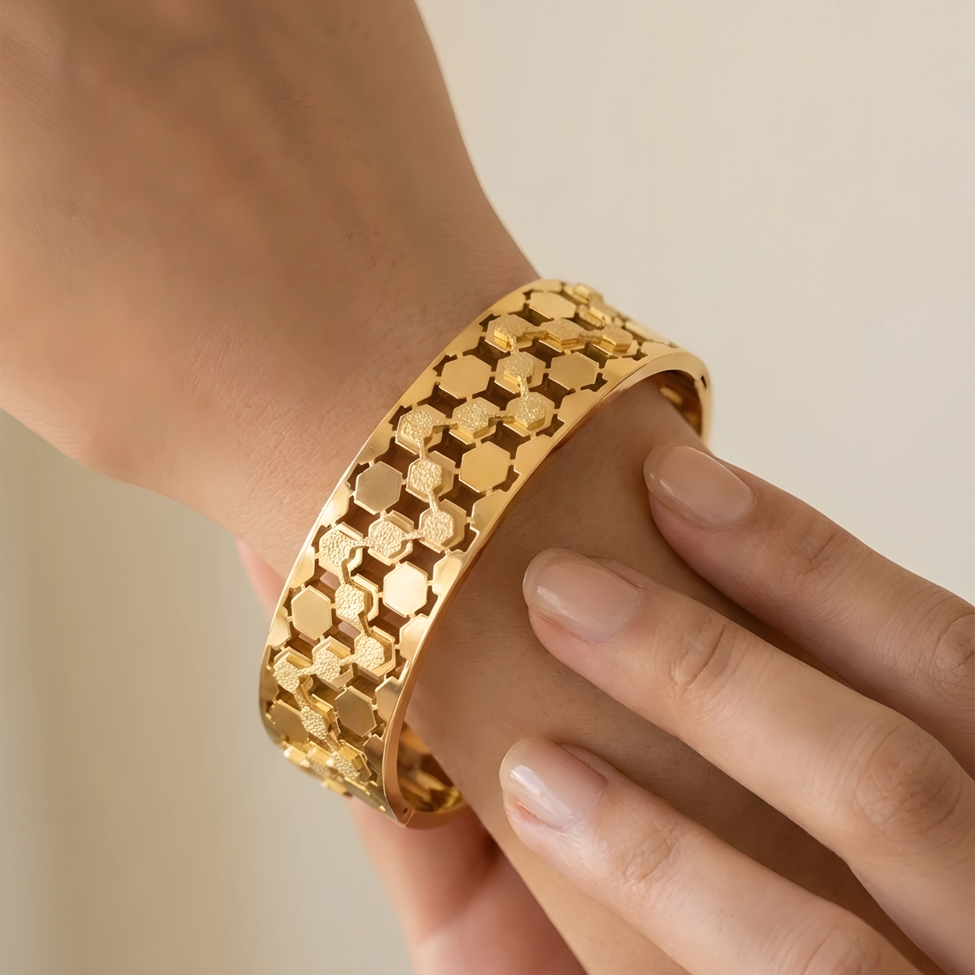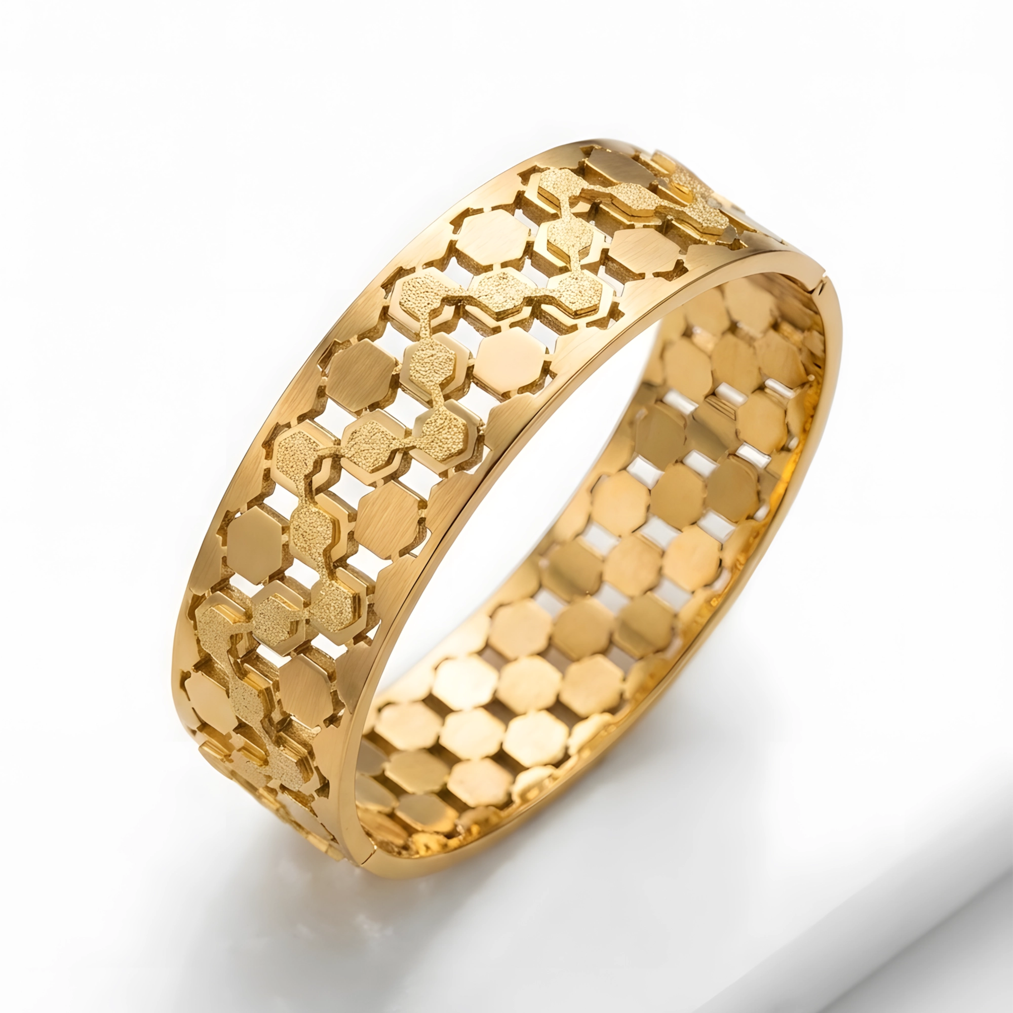 Modern Hexagon Pattern Gold Bracelet – High Polish Luxury Band