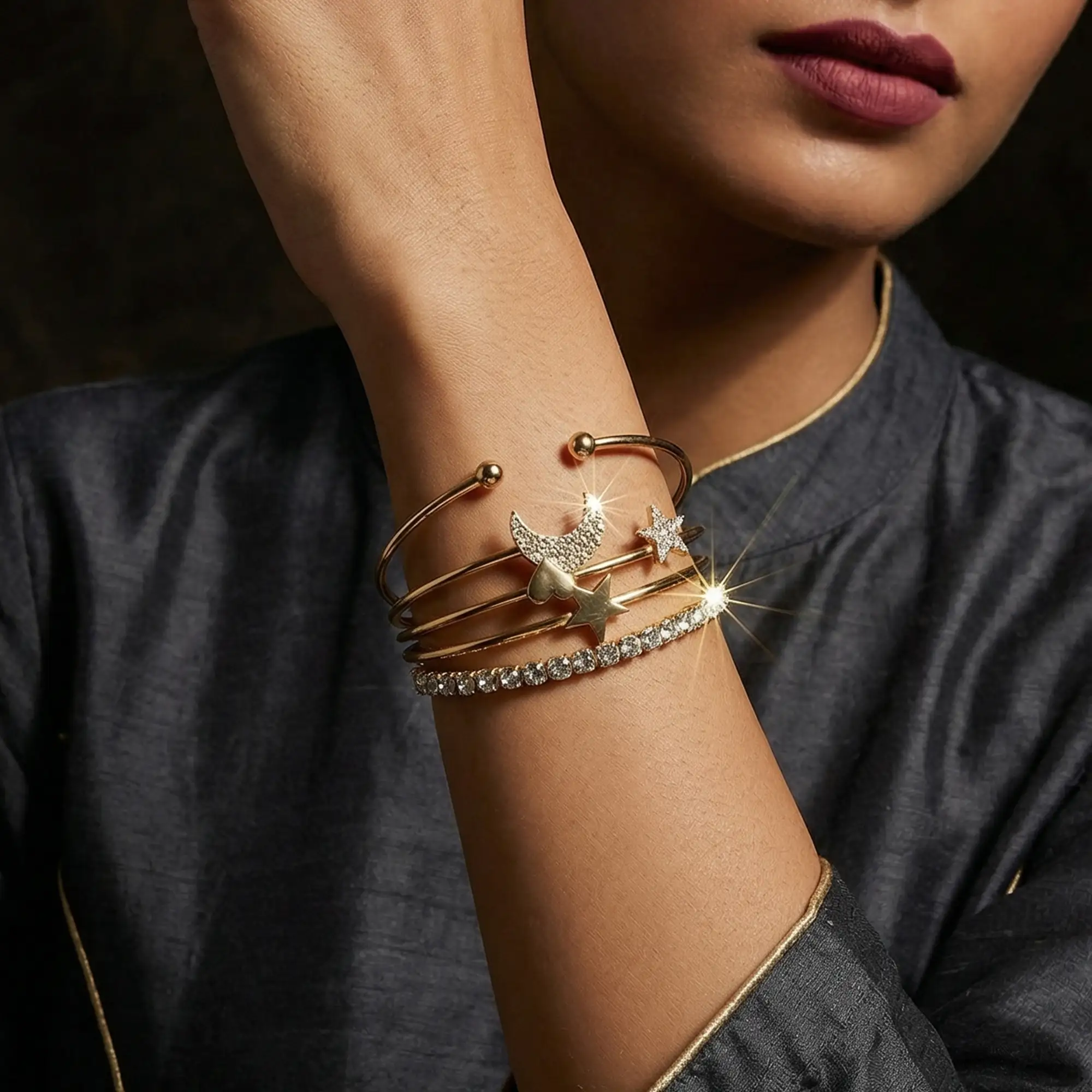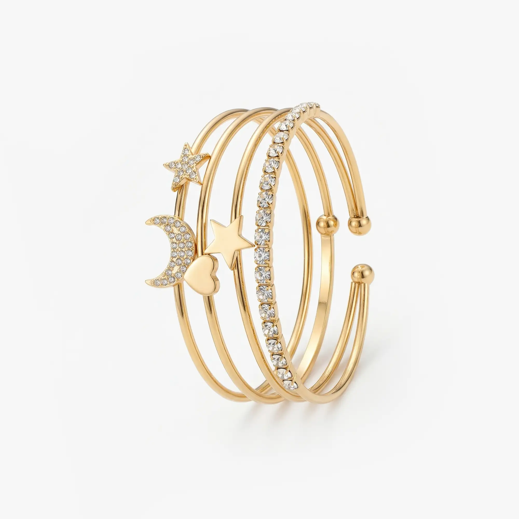 Moon & Star Gold Plated Layered Bracelet Set