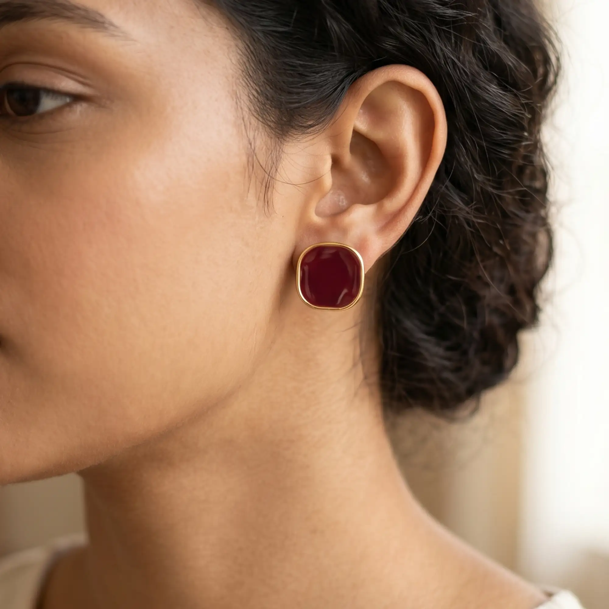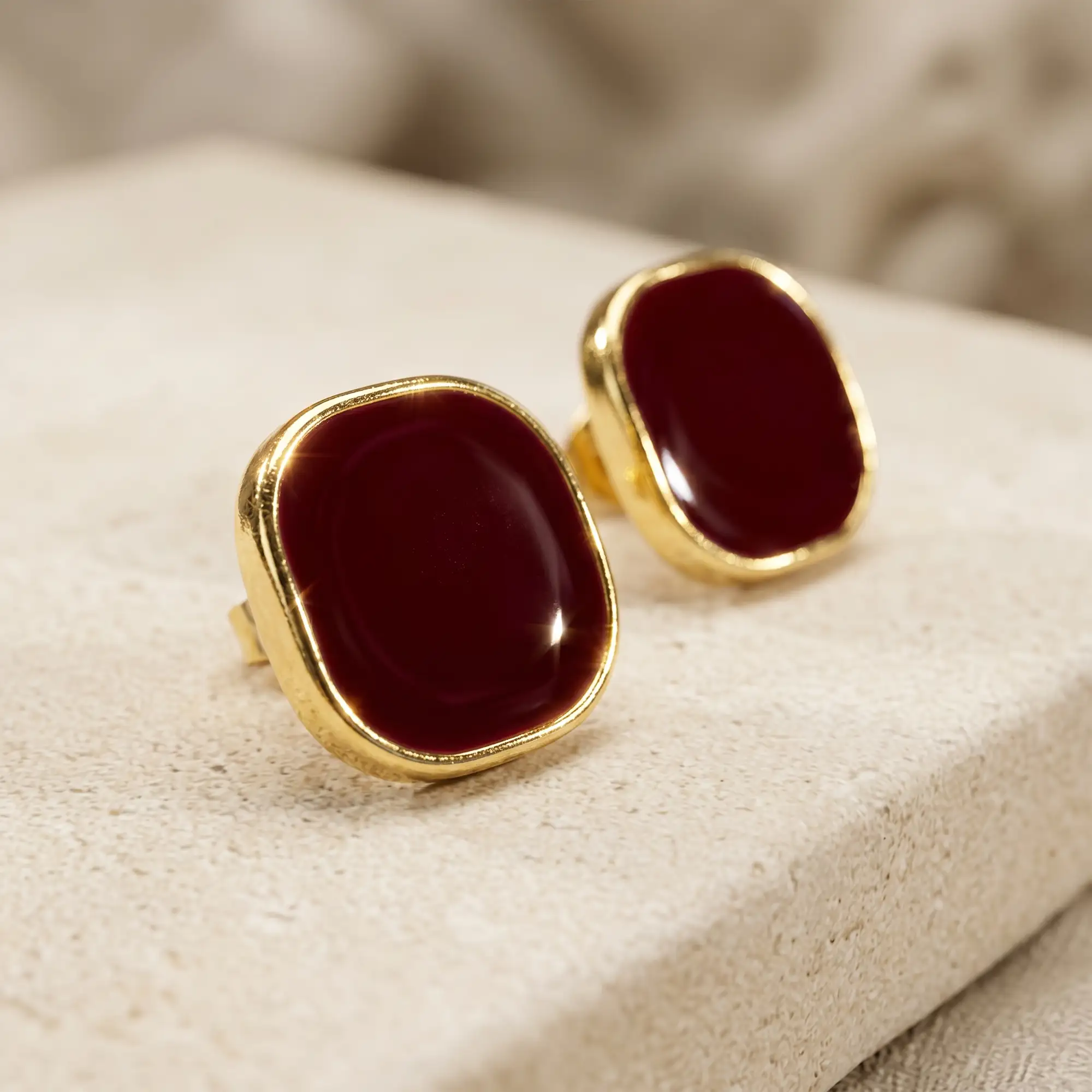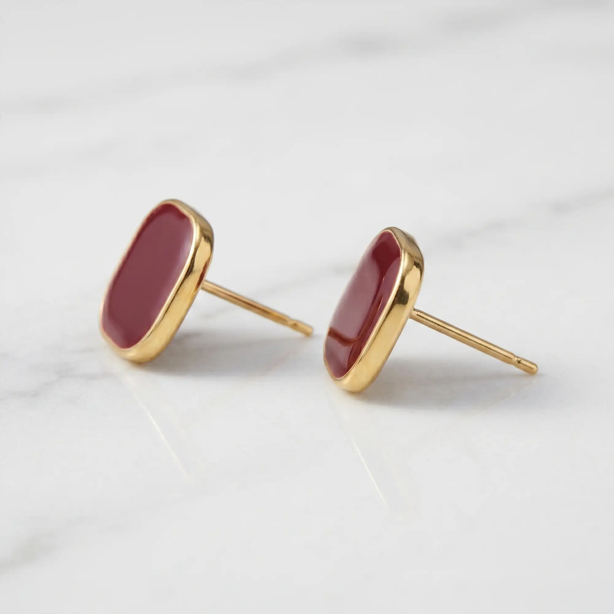 Red Stone Gold Stud Earrings