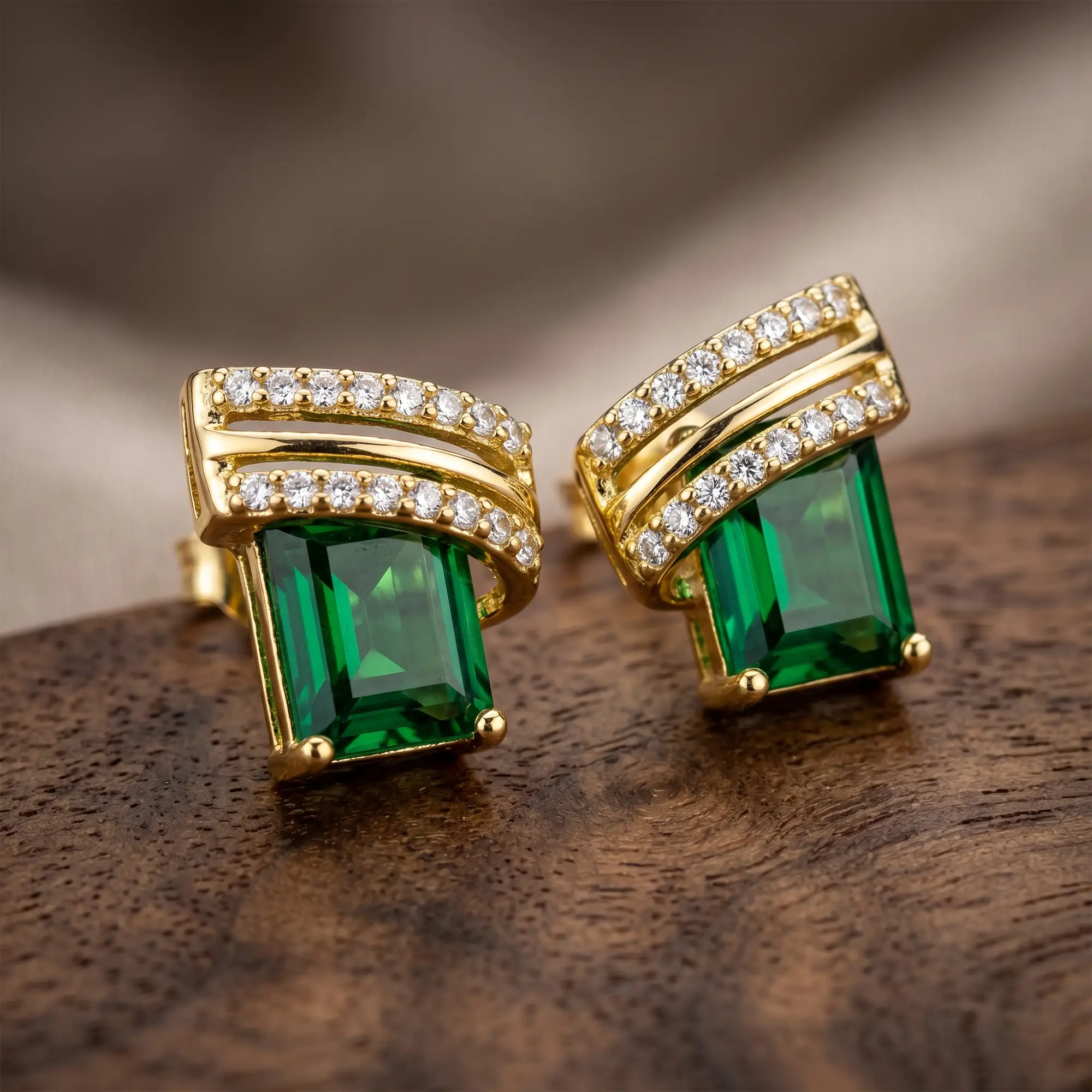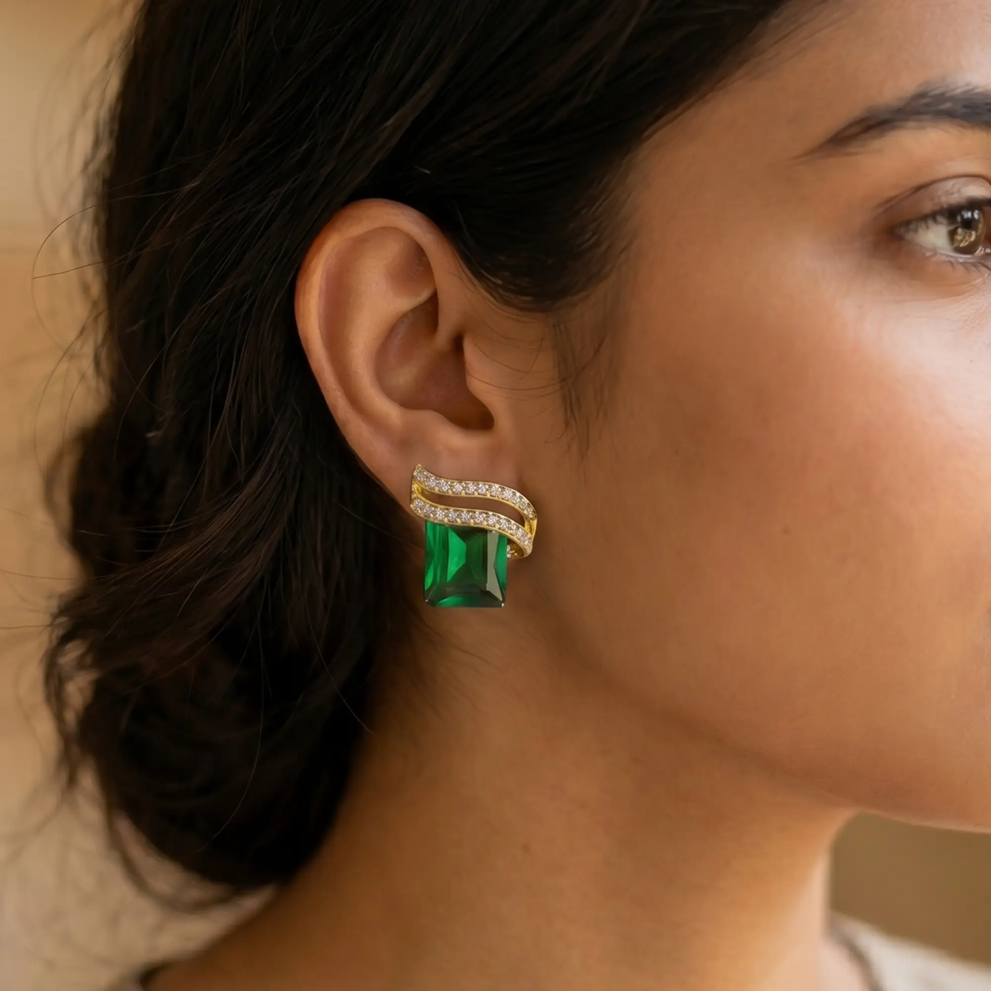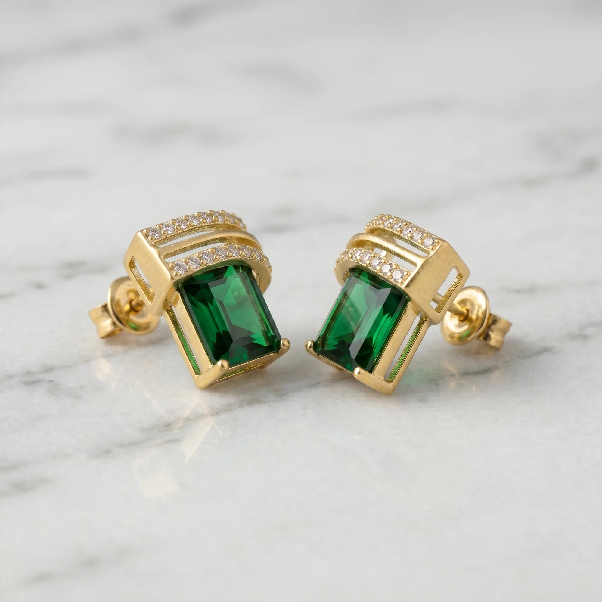 Royal Green Gemstone Stud Earrings